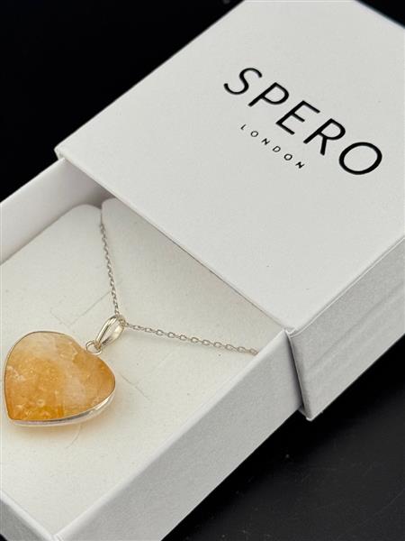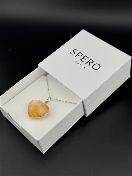 This beautiful citrine crystal heart pendant (approx. 25mm x 20mm) on a sterling silver chain comes beautifully presented in a stylish gift box. Known to attract wealth, abundance, and success, Citrine also promotes joy, self-confidence, and emotional balance. It’s believed to aid digestion, balance hormones, and detoxify the body. You will receive the exact unique piece shown in the photo.