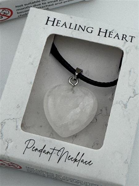 This clear quartz crystal heart necklace promotes purification, clarity, and peace. Known as a powerful healing stone, clear quartz amplifies energy and balances the mind and spirit. Its elegant heart-shaped design makes it a meaningful accessory for daily wear or meditation, helping you stay grounded and centered with calming, cleansing vibrations.