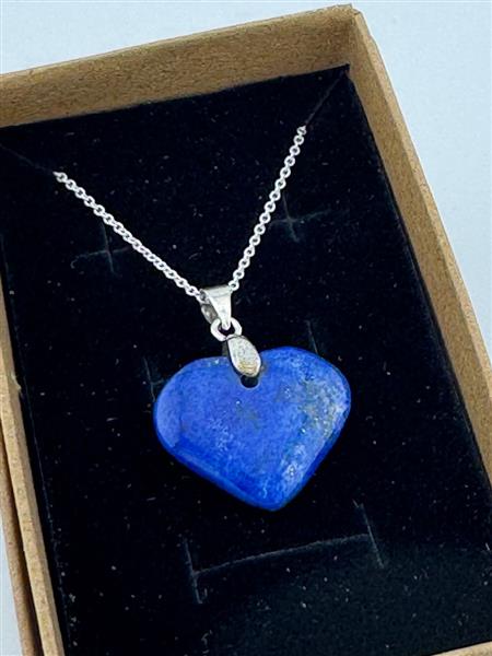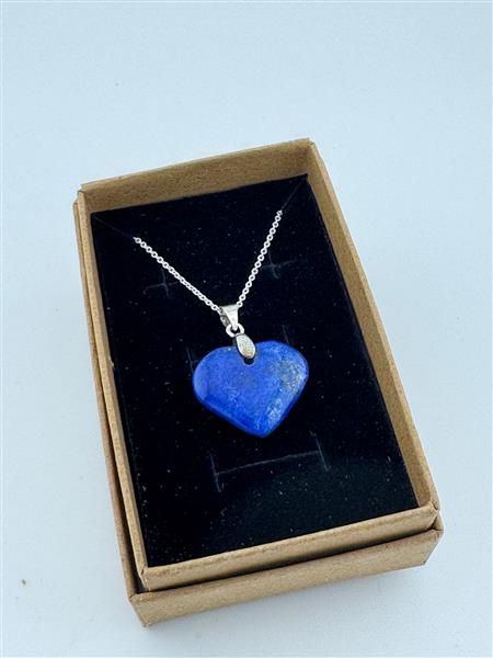 A beautiful lapis lazuli heart pendant on a sterling silver necklace, elegantly presented in a gift box. Known for activating the third eye chakra, this pendant enhances intuition, psychic abilities, and spiritual growth. Perfect as a meaningful gift or personal treasure. You will receive the exact product shown in the photos. Pendant size approx. 25mm x 20mm.