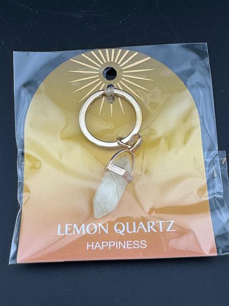 A lovely lemon quartz keyring believed to promote happiness and positive energy wherever you go. This vibrant crystal accessory combines style with healing benefits, making it a perfect everyday companion or thoughtful gift. Carry the uplifting energy of lemon quartz with you and brighten your day.