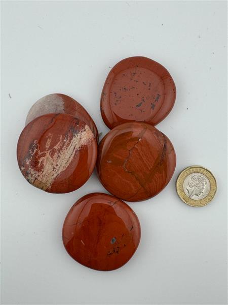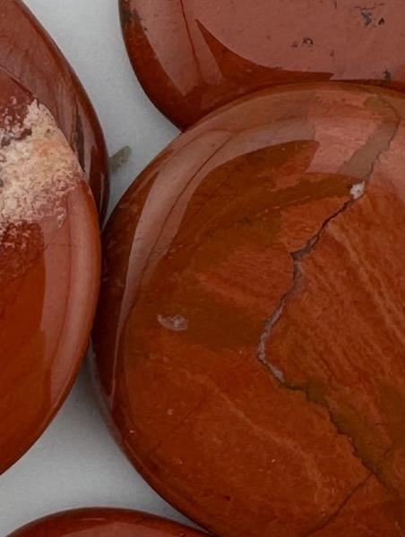 Red jasper is renowned for its healing properties, helping to strengthen the body, detoxify, and prevent negativity. This stone enhances emotions, empowers inner strength, and clears the root chakra for grounding and stability. Each piece is a unique natural crystal, so markings and patterns may vary. Size approx. 45mm diameter x 5mm depth.