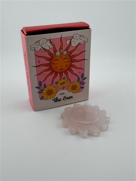 A lovely piece of rose quartz expertly carved into a sunshine shape, designed to brighten someone’s day and promote self-love. This charming crystal makes a perfect gift for loved ones or a meaningful addition to your collection. Comes complete with a gift box for easy gifting. Measures approx. 5cm in diameter.