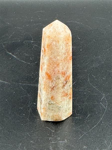 This beautiful sunstone crystal is believed to offer emotional healing, boost physical vitality, and support spiritual growth. Known for promoting confidence, creativity, and positivity, it helps alleviate stress and depression. Sunstone is also thought to enhance metabolism, digestion, and overall vitality. Measures approx. H6cm x W2cm (base). You will receive the exact piece shown.