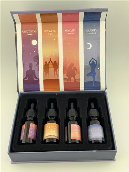 This gift set includes 4 ready-to-use essential oils: Gratitude, Kindness, Warmth, and Clarity. Aromatherapy uses essential oils to promote therapeutic benefits by stimulating the olfactory nerves, directly impacting the brain’s emotional center, the amygdala. Perfect for relaxation, mindfulness, and emotional balance. Enjoy natural wellness with this beautifully curated set.