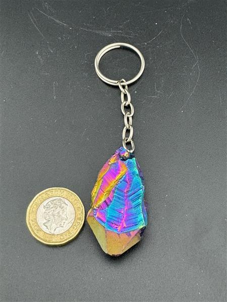This beautiful titanium quartz keyring is believed to promote physical, mental, emotional, and spiritual balance. Known as a powerful protective crystal, it helps shield against negative influences while enhancing overall well-being. Each keyring is unique with natural variations in colour, shading, size, and markings. A stylish and meaningful accessory for everyday carry.