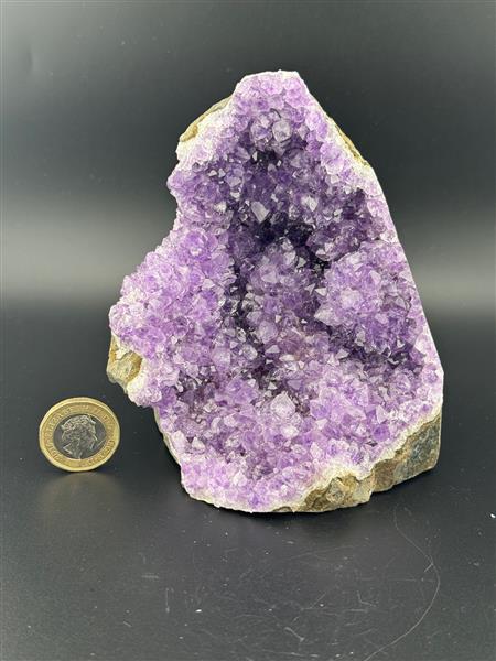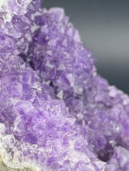 Amethyst Geodes are highly valued for their spiritual benefits, including promoting mental clarity, calming the mind, and enhancing spiritual awareness. Known for their powerful energy-cleansing properties, Amethyst geodes help remove negative energies and offer protection against unwanted influences. Placing Amethyst Geodes in your living space encourages tranquility, peace, and positive energy. The geode you will receive is the exact one shown in the photos, measuring approximately H115mm x W100mm x D100mm.